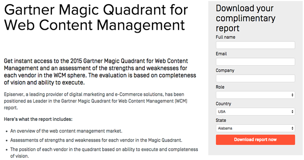 以Episerver为例。他们使用web内容报告来生成潜在客户线索,从潜在客户那里收集6条信息。