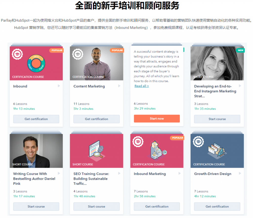 - 全中文HubSpot Onboarding 服务:对于初次购买HubSpot产品的企业,可以选择从Parllay购买全中文的HubSpot Onboarding服务,比HubSpot官方全英文服务,性价比更高。
