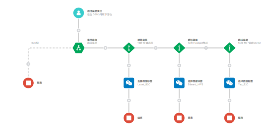 例如:是基于粉丝所感兴趣的不同意向产品线(如点击了不同的菜单栏/公众号后台触发了不同的关键词)等等,还是基于粉丝处于不同生命周期阶段的关键性动作(如提交H5表单/点击链接下载白皮书)等等。