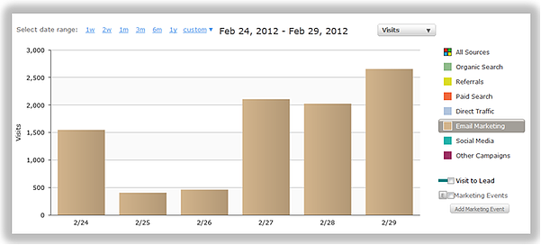 网站流量-如果你的电子邮件给你的网站带来很多访问量,你应该看到一个上升的网站流量,检查你的流量来源,看看有多少流量是由电子邮件比之前你实施你的营销自动化解决方案。