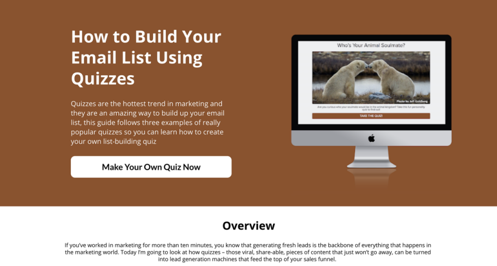 这个方法的一个很好的例子来自于interaction的工作人员。为了解释如何制作小测验,interaction创建了以下深入的博客文章,深入探讨了小测验如何帮助建立电子邮件列表(我们在步骤4中讨论过的策略)。
