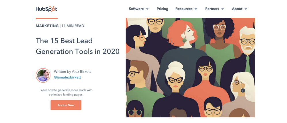 作为回报,你也吸引了那些正在寻找类似你的解决方案的受众——这有可能驱动线索。下面你会发现HubSpot博客上的一个很好的例子:15个最好的线索勘探工具。