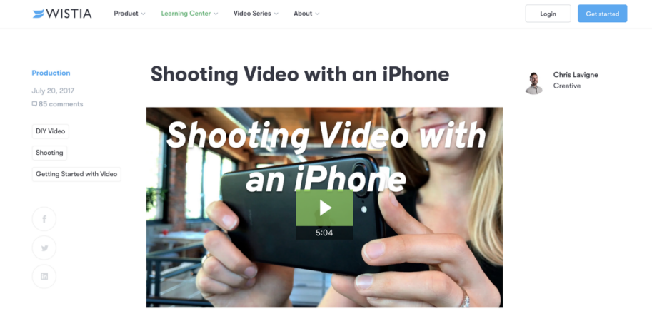视频拍摄和分析公司Wistia为需要帮助拍摄自己视频的公司提供了一系列教育视频。这里是Wistia关于如何用iPhone拍摄视频的信息库。