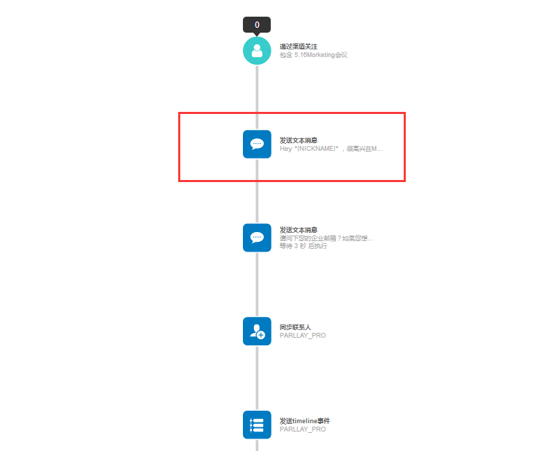 对于第二阶段营销目标,将MQL尽可能多的转化为SQL,“烽火台”可以通过工作流来实现自动化营销。在此阶段,我们需要根据客户的实时互动情况(探知客户具体需求),以一定频率来对应的发送一些产品功能说明,相关解决方案和服务体系等营销内容。