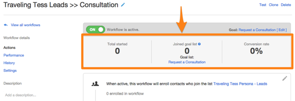 一旦你的目标列表被添加,你会注意到你的工作流程顶部已经改变,以收集性能数据: