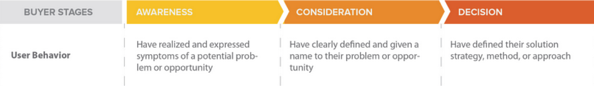 让我们先来思考一下买方的旅程的各个阶段:意识、考虑和决策。购买者的旅程是潜在购买者在购买前经历的积极的研究过程。