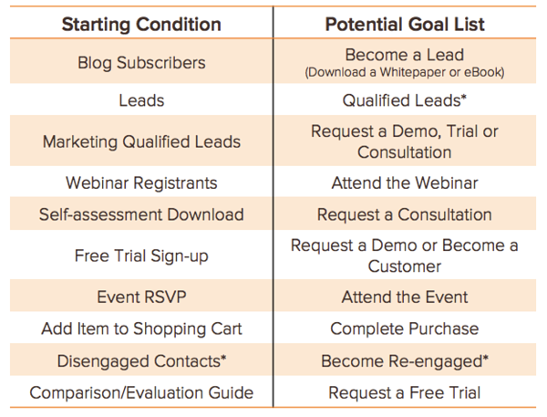 考虑到目标列表对工作流的总体度量有多么重要,理解什么是合适的目标列表是至关重要的。在开始使用工作流应用程序进行潜在客户培养之前,考虑一下如何将提供的内容逻辑地组合在一起是很重要的。将相似的内容分组,可以更容易地分析您的成功和机会,从而改进您的培育工作。