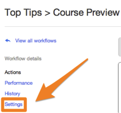 既然您已经花时间重新考虑了您的初始条件、目标列表以及您组织工作流的方式(以及其中的操作),那么您可能最不想做的事情就是破坏自动化上的分析。谁能怪你呢!在切换到实时工作流程之前,花一分钟仔细检查设置是很重要的。您可以在工作流应用程序的左侧导航菜单中找到设置链接:。