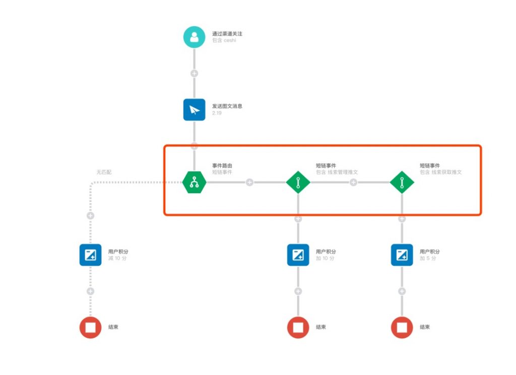 通过烽火台工作流,我们可以向点击/跳转短链的用户发送图片消息、文本消息、图文消息、个性化图文消息和模板消息,我们可以为他们增加或减少平台标签和微信标签,我们可以调整他们的积分(包括加分和减分),我们也可以修改他们的生命周期(关注粉丝、销售线索、高质量线索、销售机会、意向客户、付费客户、忠诚客户、其他)。